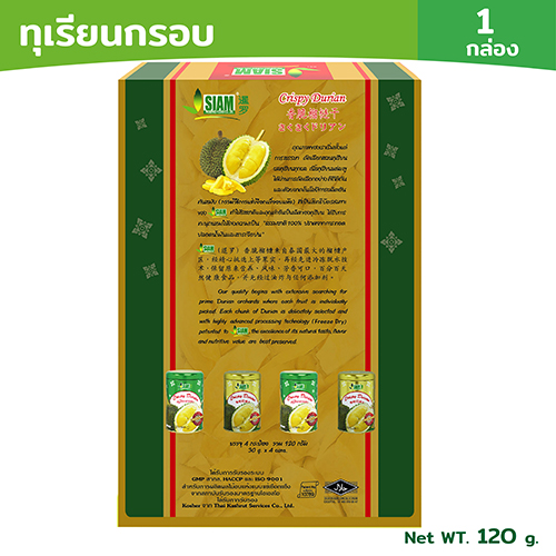 ข้อมูลผลิตภัณฑ์: ผลไม้อบกรอบ ตราสยาม ได้ผ่านการคัดสรรวัตถุดิบอย่างพิถีพิถัน ผลิตด้วยกรรมวิธีที่ทันสมัย เพื่อให้ได้สินค้าที่มีคุณภาพ ได้รับการทะนุถนอมให้คงความเป็น“ธรรมชาติ 100% ปราศจากการทอด ปลอดน้ำมันและสารเจือปน” บรรจุลงในบรรจุภัณฑ์ที่ได้รับมาตรฐานและสวยงาม เพื่อให้สินค้าคงความสดใหม่จนถึงมือผู้บริโภค